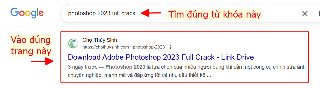 - Bước 2: Tìm từ trên xuống dưới sẽ thấy trang https://chothuysinh.**/**** thì bấm vào đó