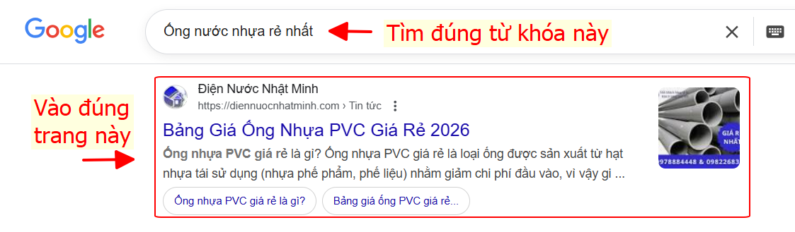 - Bước 2: Tìm từ trên xuống dưới sẽ thấy trang https://diennuocnhatminh.**/***** thì bấm vào đó