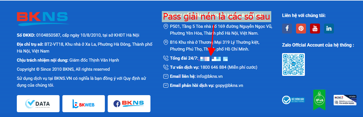 - Bước 2: Tìm từ trên xuống dưới sẽ thấy trang https://www.bkns.**/**** thì bấm vào đó
