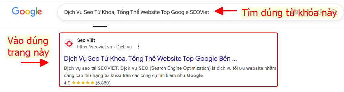 - Bước 2: Tìm từ trên xuống dưới sẽ thấy trang https://seoviet.**/*** thì bấm vào đó