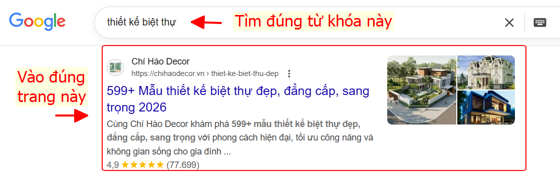 - Bước 2: Tìm từ trên xuống dưới sẽ thấy trang https://chihaodecor.**/**** thì bấm vào đó